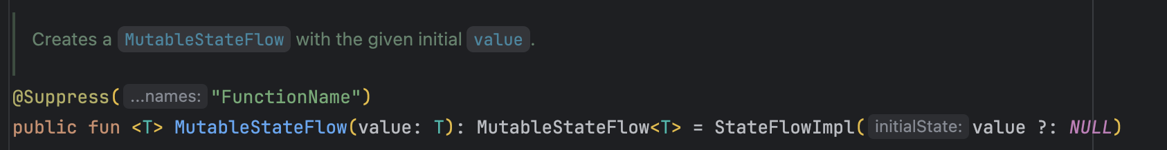 위 사진은 MutableStateFlow의 내부 구현인데 value는 제네릭이기 때문에 그 값이 반드시 non-null일 필요는 없다.
