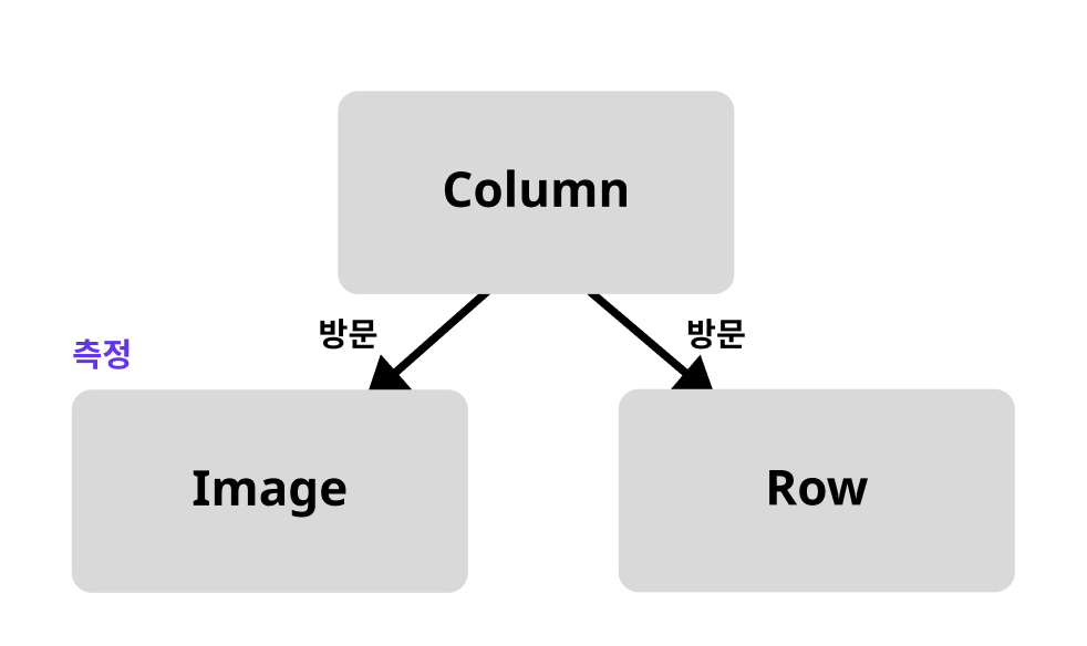 1. Column 노드는 하위 요소 측정 단계에서 하위 요소가 Image, Row 두 개가 있기 때문에 왼쪽 자식부터 방문한다.