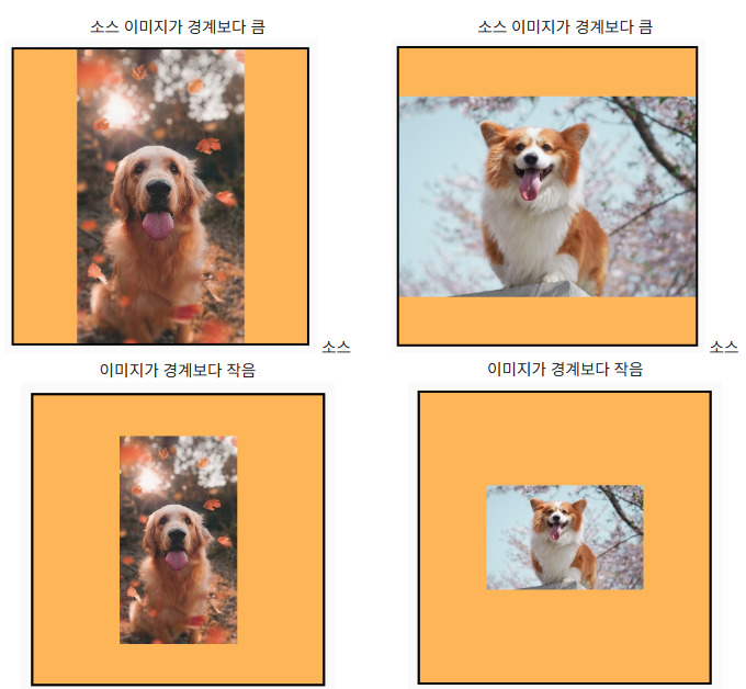 - 콘텐츠가 크기보다 작으면 이미지는 경계에 맞게 확대 조정된다.