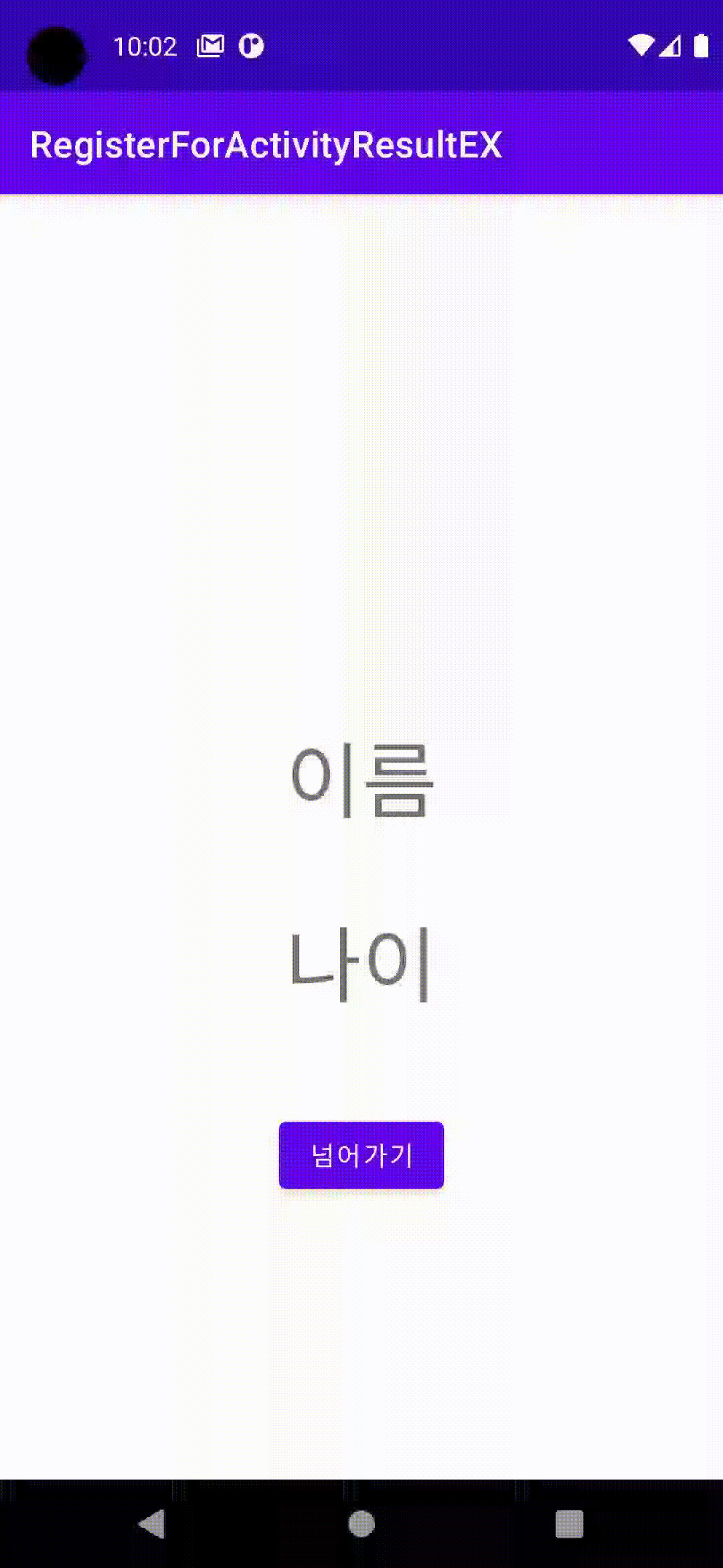 그 후 result.resultCode가 올바르게 넘어오면 B액티비티(secondActivity)에서 넘겨준 이름과 나이를 getStringExtra로 받는다.