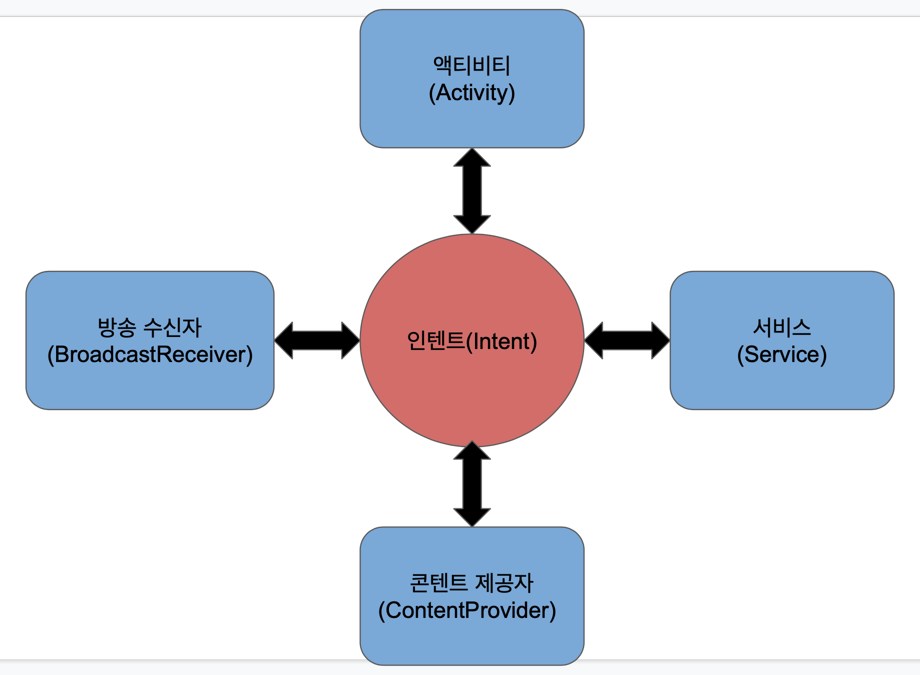 - 각 컴포넌트들은 인텐트를 통해 서로 상호작용한다