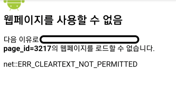 프로젝트에서 웹뷰로 불러와야 하는 화면이 있는데 그래서 당연히 웹뷰를 구현해 로드를 하면 될 줄 알았다. 하지만 역시 한 번에 되기란 쉽지 않고 아래 사진처럼 사용 시 "웹페이지를 사용할 수 없음"이라는 오류가 발생하였다.