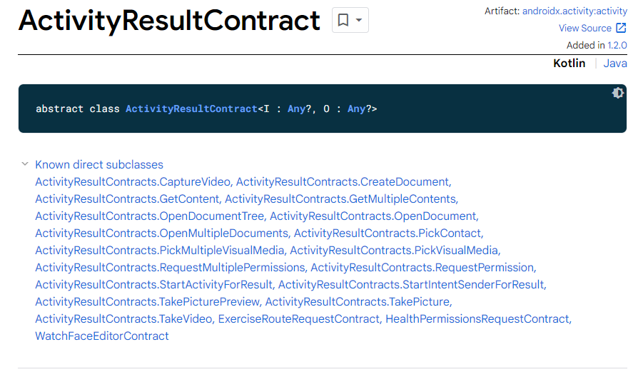※ ActivityResultContract객체로는 아래 사진과 같이 공식문서 가면 나와있으니 참조 바람