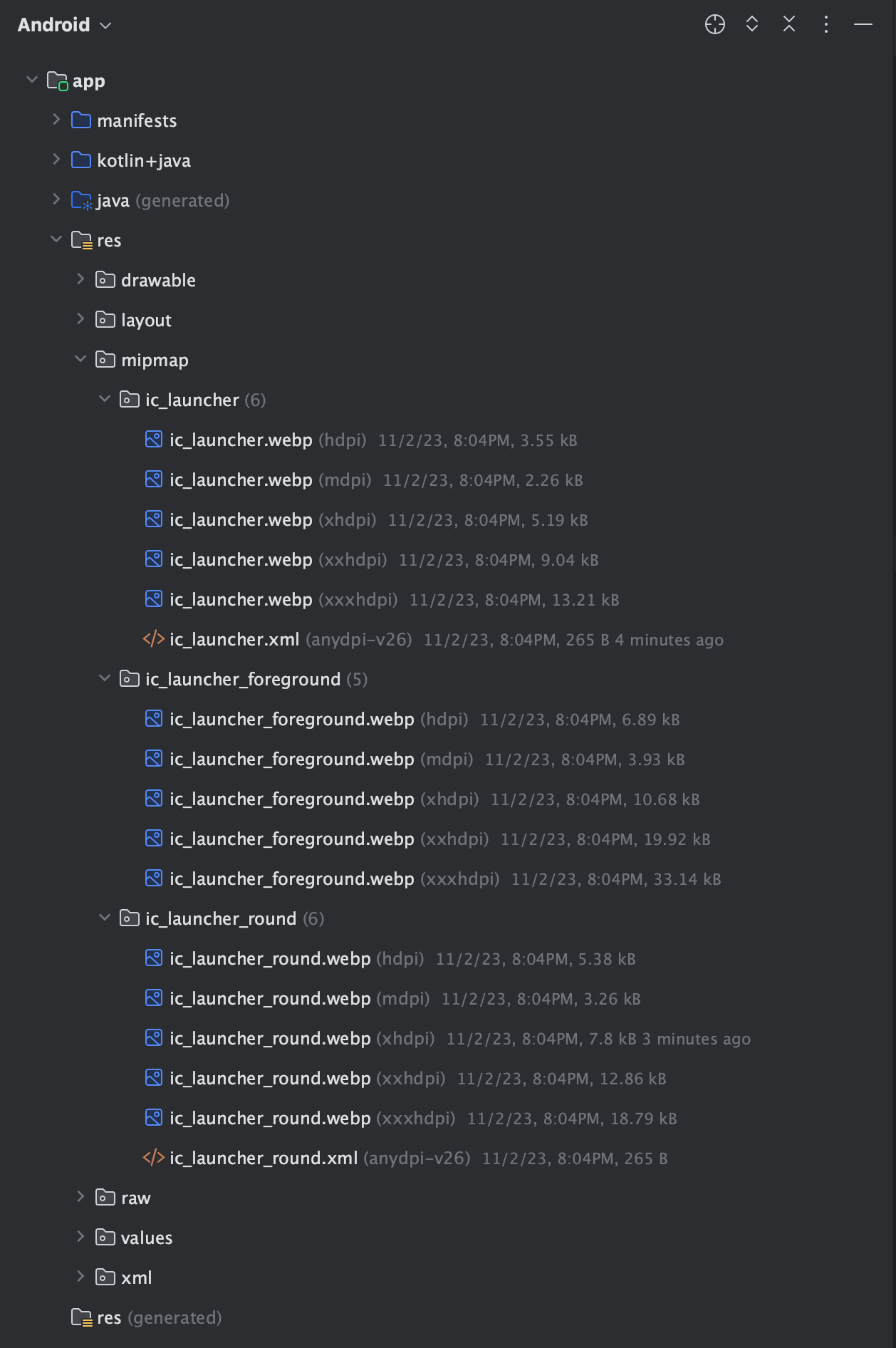 사이드프로젝트를 하는 도중 안드로이드 아이콘을 기본 아이콘에서 디자이너 분이 준 아이콘을 적용해야 하는 일이 생겼다.