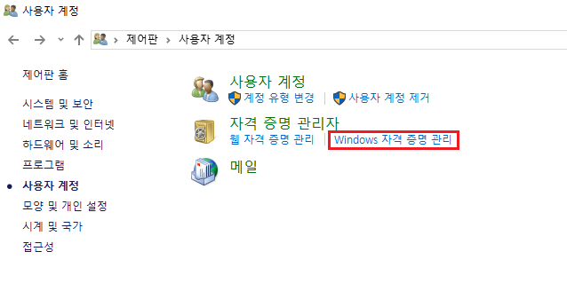 3. 자격 증명 관리자 - Windows 자격 증명 관리 클릭