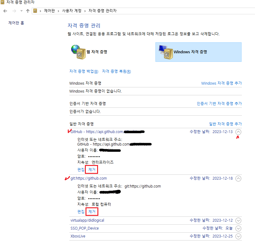 4. 일반 자격 증명 - git으로 시작되는 자격 증명 제거