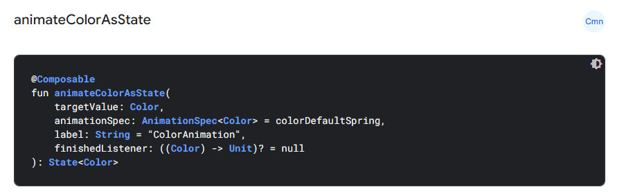 우선 이 컴포저블 함수는 이름에서도 알 수 있다시피 Color에 관련한 애니메이션 함수이다.