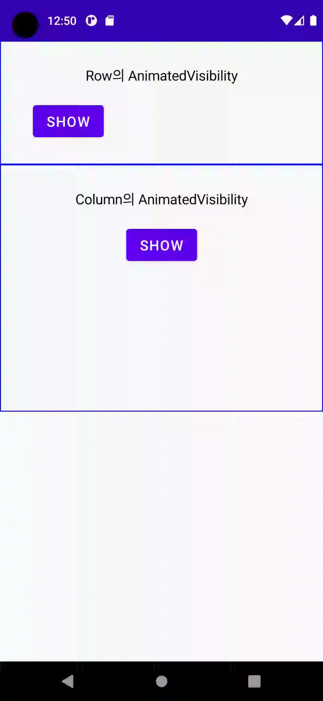 이번에도 아래는 AnimatedVisibility의 유무의 차이이다.