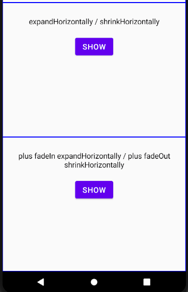 이경우는 위에서 확장함수 미리 보기에서 보다시피 expandHorizontally / shrinkHorizontally를 사용해 주면 간단하다.
